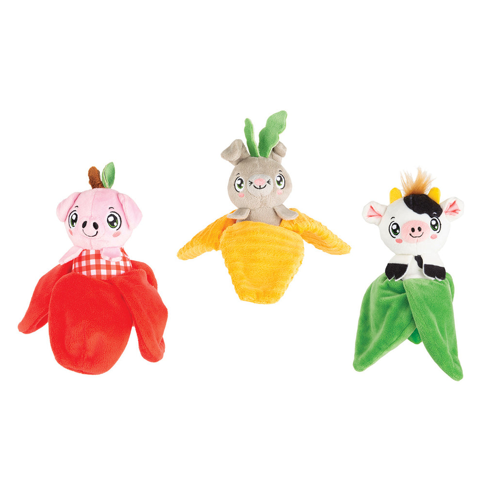 Assorted contains 3 characters. Take a peek inside as you peel to reveal a super soft plush animal